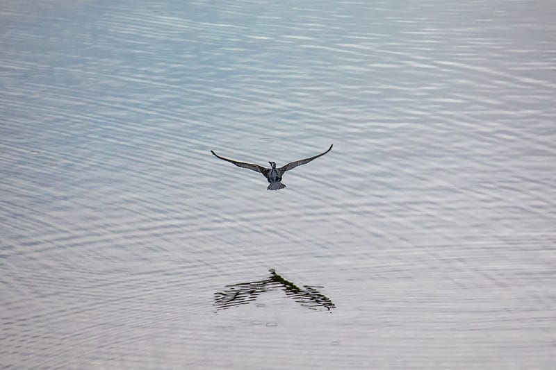 The photo above was a result of when I was on a nearby highway bridge, taking snapshots of some spot-billed ducks on the river. A a cormorant flew through the scene, and I quickly re-focused my lens to follow it upstream.